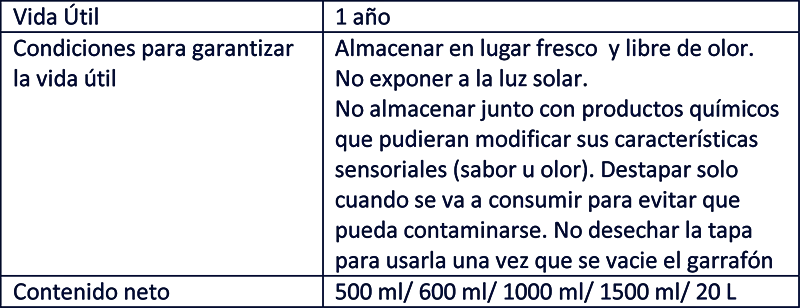 El agua purificada ya como producto final cumple con las especificaciones de la Norma Oficial Mexicana NOM-201-SSA1-2002 Productos y servicios. Agua y hielo para consumo humano, envasados y a granel.